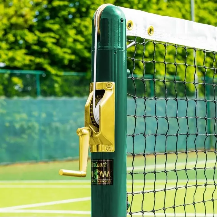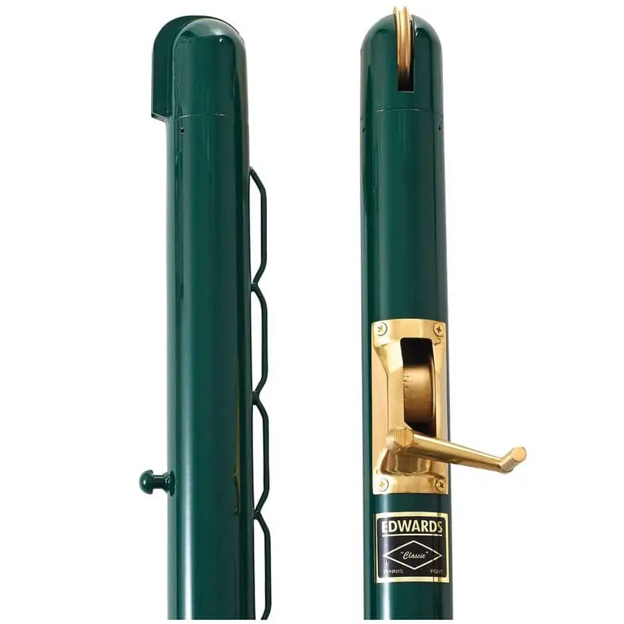 The Classic Quick Start Tennis Posts are built to meet the high standards of the North American market. Built from sturdy 3″ round tubular steel, it provides excellent stability and long-lasting performance. The black or green powder-coated finish not only enhances its appearance but also protects against weather and wear, ensuring reliability over time. The posts come complete with a brass winder and lacing bars for easy net setup and adjustment. Sold in pairs – tennis net and ground sleeves are purchased separately.