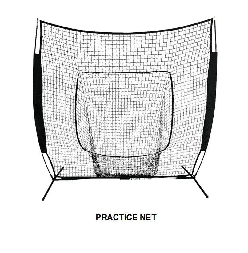 – Practice Net (7′ x 7′ bow type frame – black; carry bag & stakes are included)