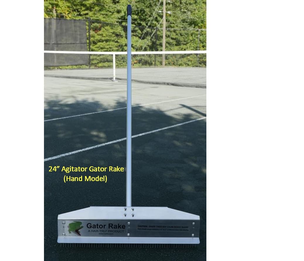 The Gator Rake line of products is a tool that can be used daily to leave the ideal amount of loose surface for perfect play. Many of Har-Tru courts need daily agitation to perform at their best. The shape and length of the aluminum teeth, along with the weight characteristics of the rake make it unique to its purpose.