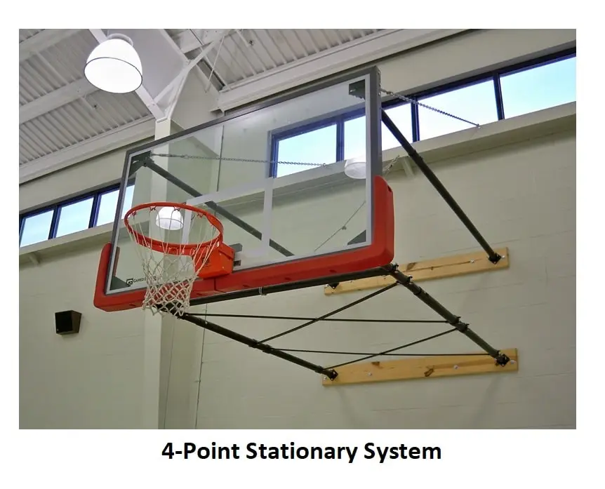 Transform the basketball court with a complete wall mounted basketball system. Four-point wall mounts incorporate a traditional four-point attachment design. Available in varying extension options.