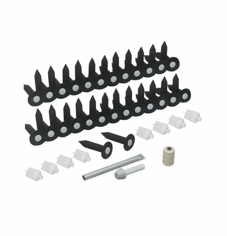 ● Installation Accessory Kit: 4 Lining Pegs, 600′ spool of string, pilot hole tool, and socket setter