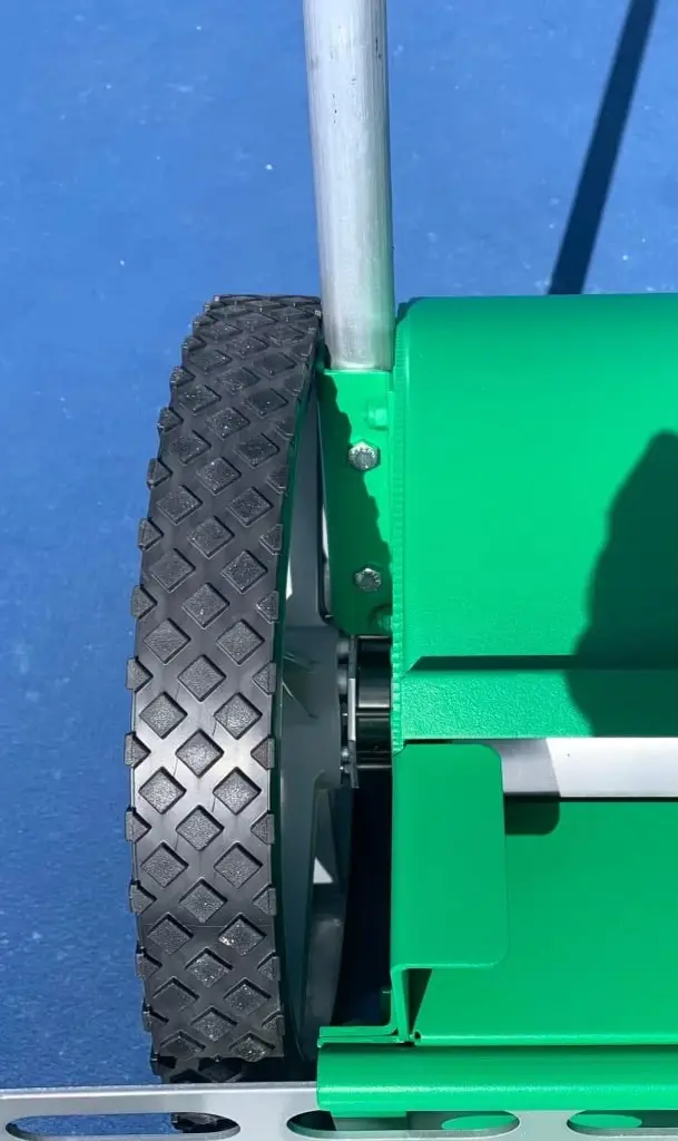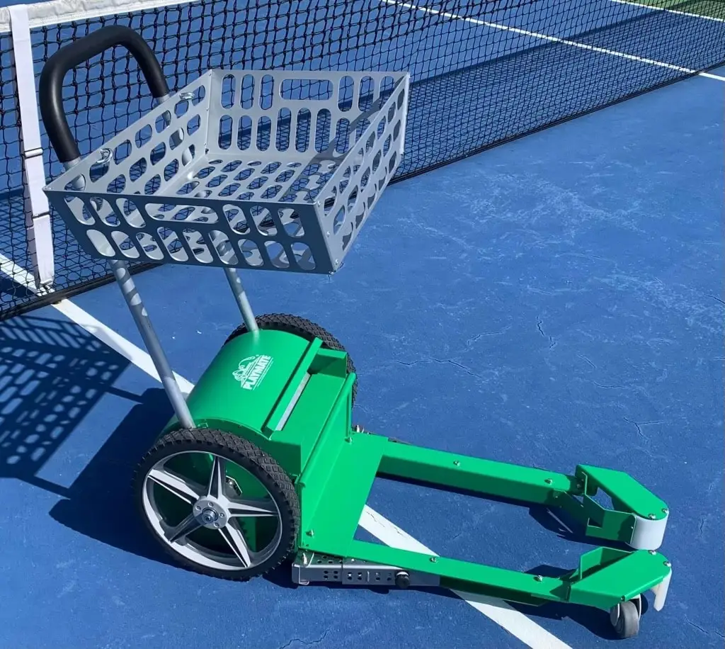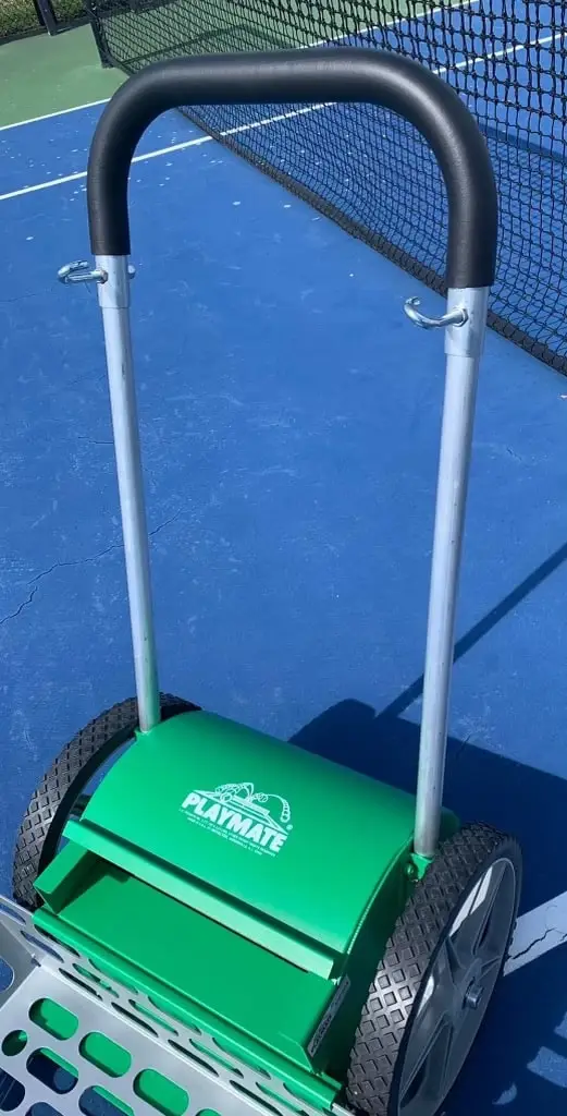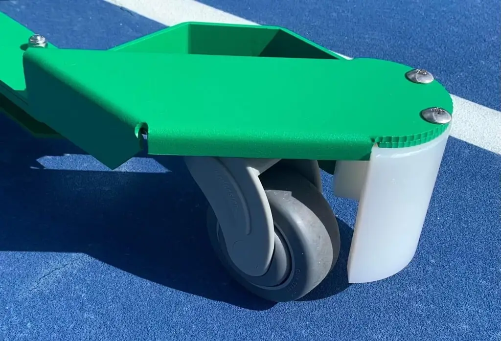 Playmate has gone back to the drawing board to make their already great tennis ball mower even better! With a redesigned handle, upgraded casters, and even an independent rear wheel locking system.