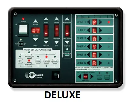 ● The Deluxe model can be programmed to shoot balls in a pattern of up to six shots, with each shot directed to any of seven different court positions, or to a random position