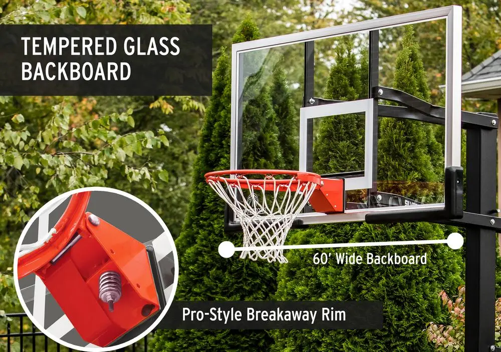 ● Tempered glass backboard and breakaway rim that flexes under pressure