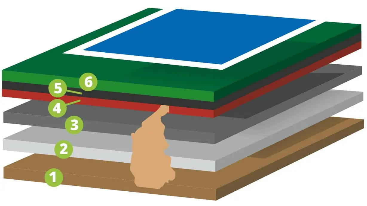 This proprietary system balances dynamic energy return for efficient running with cushioning for comfort and injury prevention. The integration of high-quality rubber granules within a latex-based system ensures long-lasting elasticity, consistent traction, and reliable surface stability, making Plexitrac® an ideal solution for schools, training facilities, and competitive track environments.