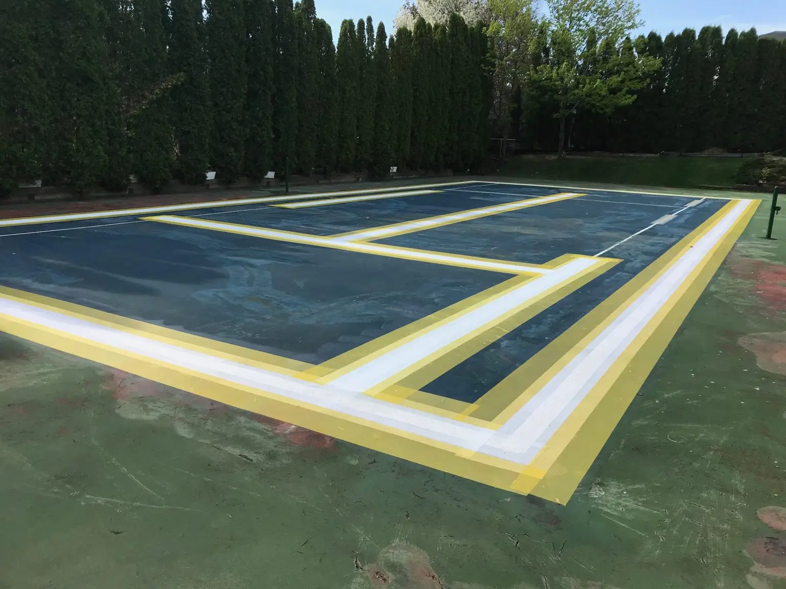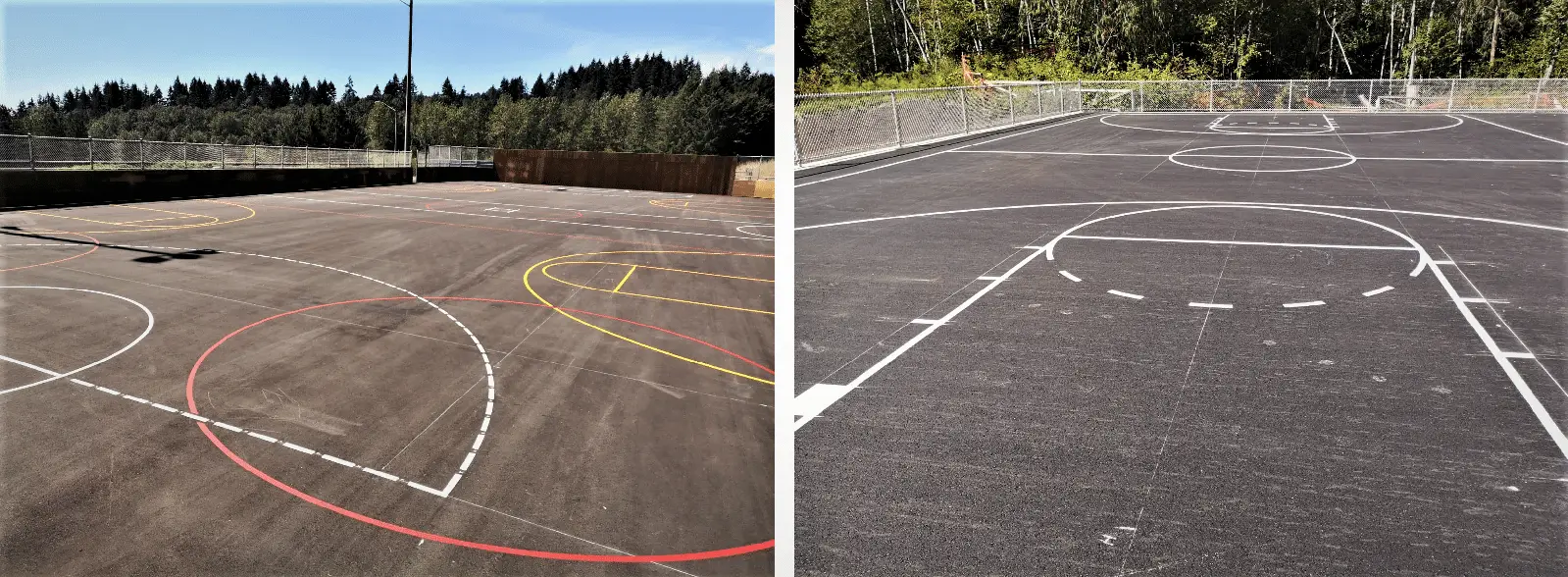 Tomko has the ability to stripe your court for any sport and any size for all game lines. These include Basketball lines (high school, FIBA, NCAA, NBA), Pickleball lines, Lacrosse/ Hockey lines and many more. All lines are surveyed and hand-taped and painted with Plexicolour textured line paint that comes in a variety of colors. Contact us today to request a quote.